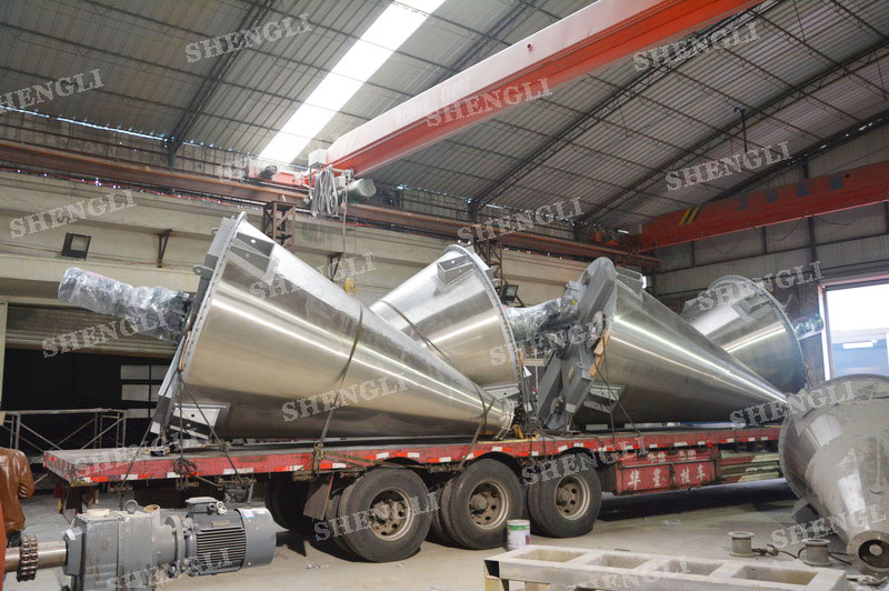 描述:錐形攪拌機內部安裝非對稱傾斜螺旋,雙螺旋自身旋轉,提升物料,并有公轉減速箱驅動,沿錐體中心軸公轉,360度攪拌物料,擁有非破壞性攪拌以及快速且無殘留卸料的特點。