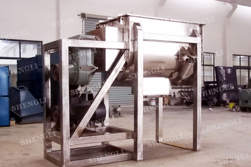 工作原理:槳葉混合機采用U型筒體,內設平行主軸,主軸上安裝若干傾角式槳葉刀,不僅能快速高效的攪拌物料,且不會破壞物料,不會卡料。