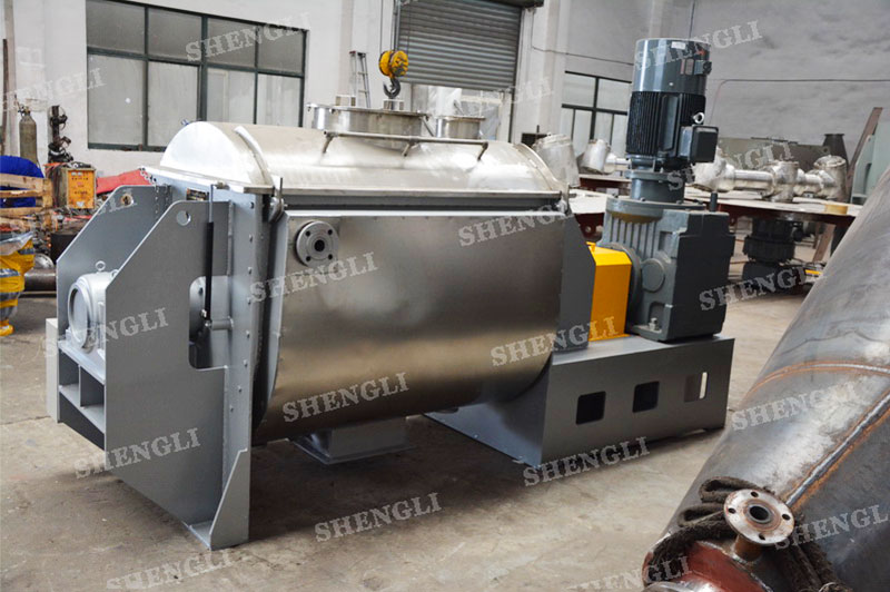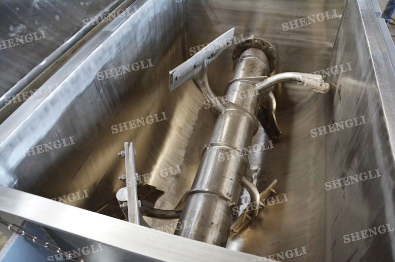 工作原理:槳葉混合機采用U型筒體,內設平行主軸,主軸上安裝若干傾角式槳葉刀,不僅能快速高效的攪拌物料,且不會破壞物料,不會卡料。