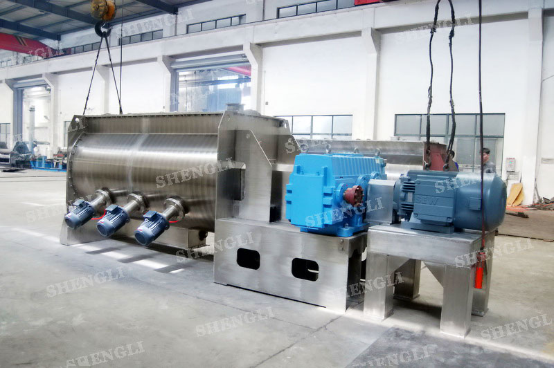 工作原理:槳葉攪拌機采用U型筒體,內設平行主軸,主軸上安裝若干傾角式槳葉刀,不僅能快速高效的攪拌物料,且不會破壞物料,不會卡料。
