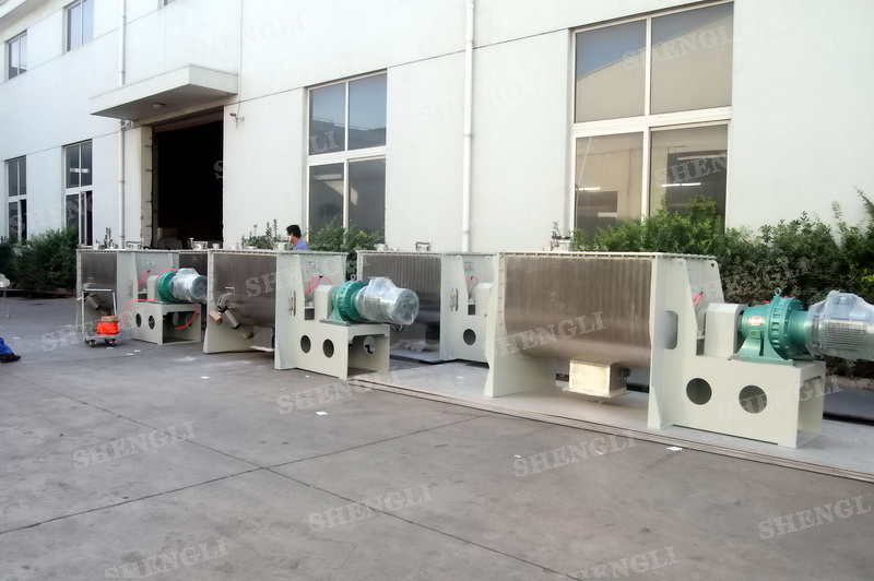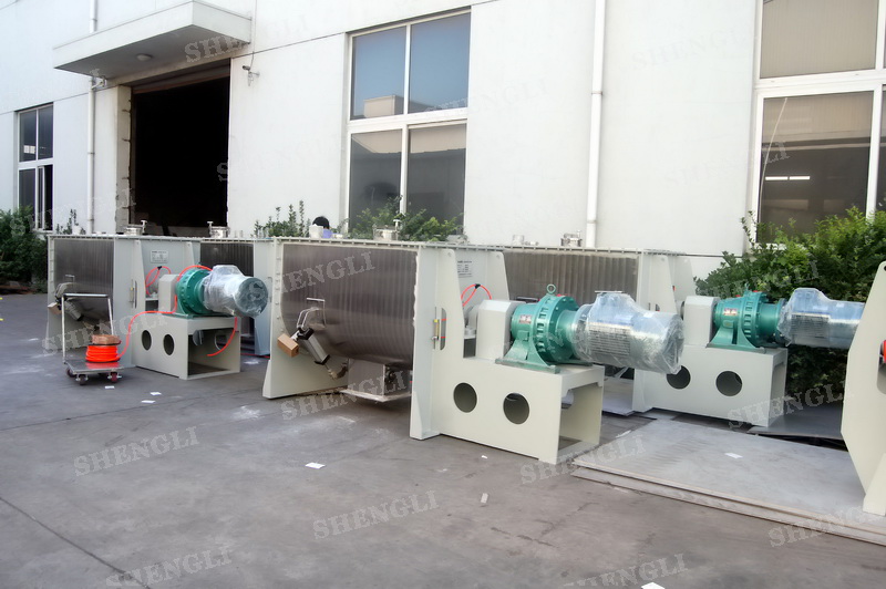 工作原理:螺帶混合機采用U型筒體,內(nèi)裝平行主軸,主軸上安裝正反雙向的盤條螺帶,不同維度螺帶分內(nèi)螺帶與外螺帶,物料在螺帶的驅(qū)使下反復(fù)參混,能夠快速高效的混合。