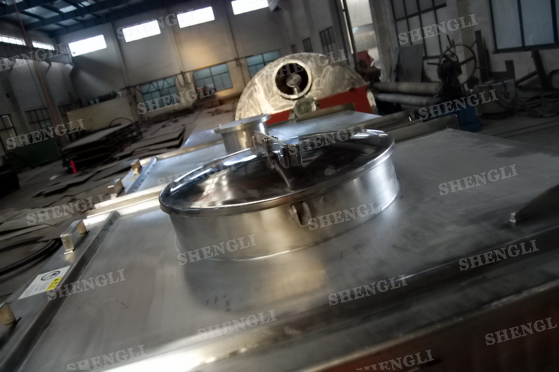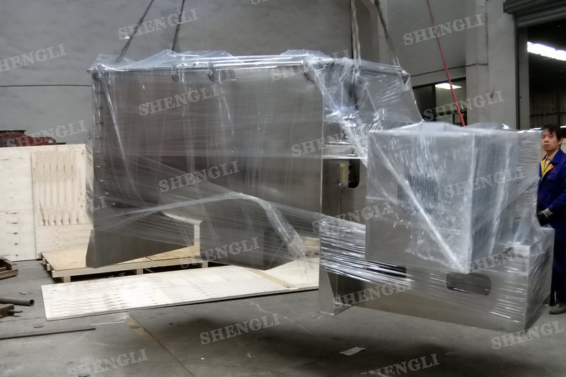 設備配置:配置K系列減速機、垂直安裝;桶蓋為快開式雙開門,加設快開投料口;出料閥采用氣動翻板閥;設備主軸采用氣密封;設備內表面鏡面拋光、外表面拉絲拋光。