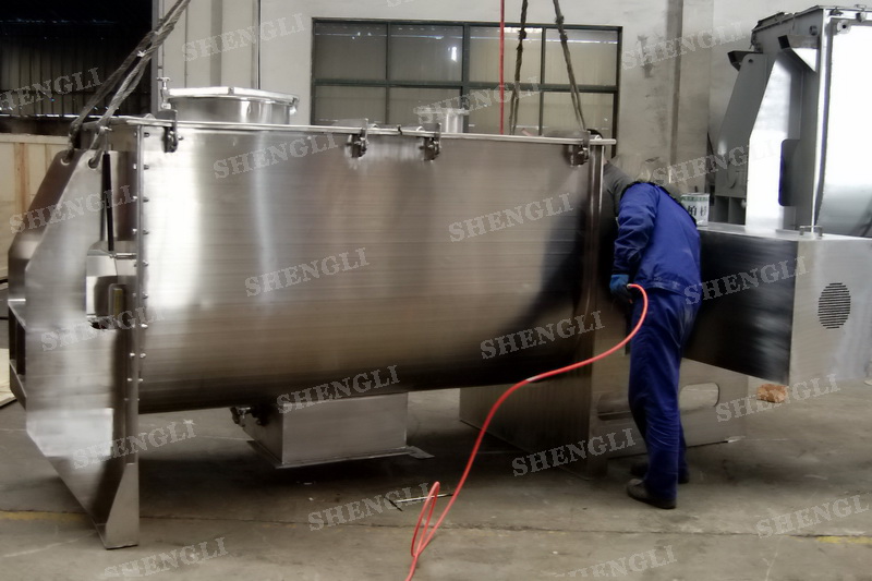 工作原理:螺帶混合設備采用U型筒體,內裝平行主軸,主軸上安裝正反雙向的盤條螺帶,不同維度螺帶分內螺帶與外螺帶,物料在螺帶的驅使下反復參混,能夠快速高效的混合。