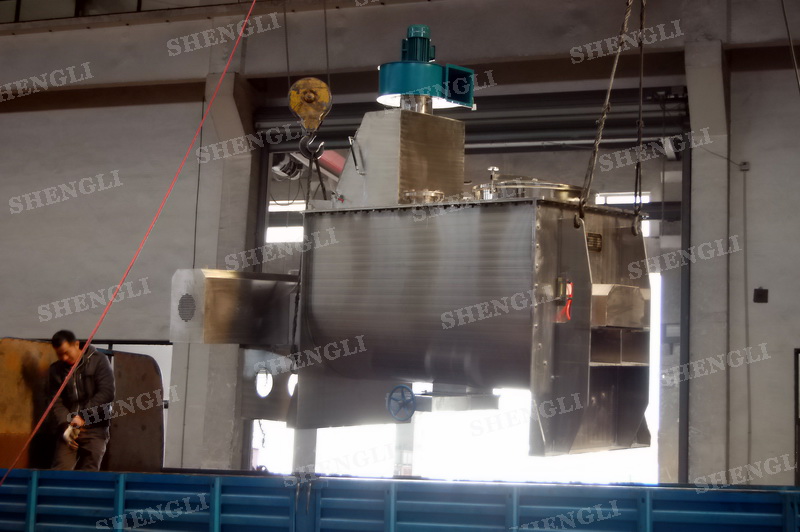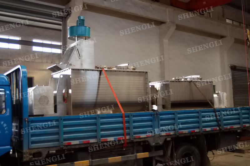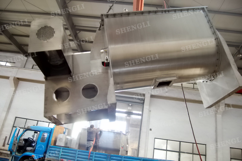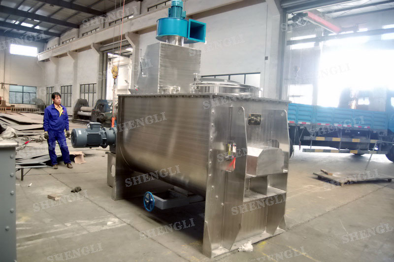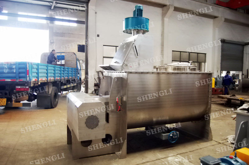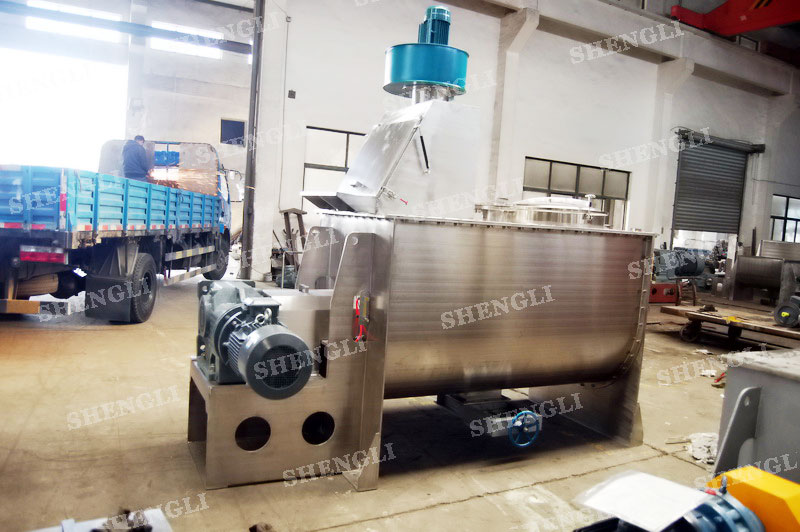 工作原理:螺帶式混合機采用U型筒體,內裝平行主軸,主軸上安裝正反雙向的盤條螺帶,不同維度螺帶分內螺帶與外螺帶,物料在螺帶的驅使下反復參混,能夠快速高效的混合。
