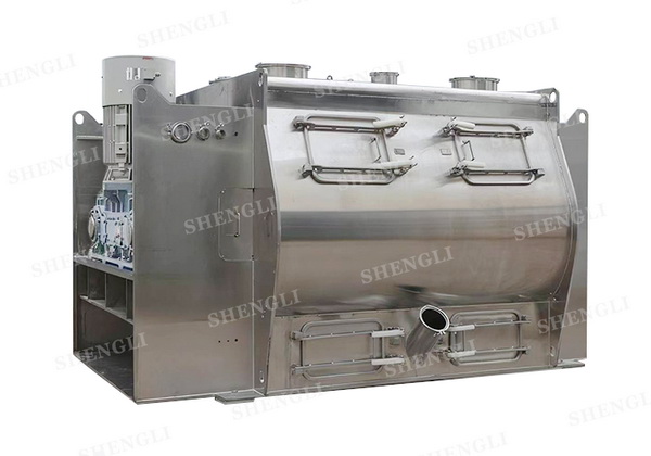 無重力混合機根據不同的物料性質可對雙軸槳葉進行適應性調整。 如:增設耐磨攪拌葉片、增設四氟攪拌葉片、鋸齒形攪拌葉等無重力混合機可增設高速破碎軸于筒體內部,配合攪拌物料流起打散作用。