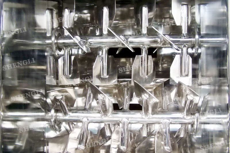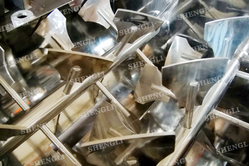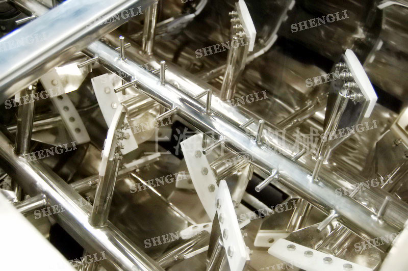工作原理:無重力混合機采用雙U型筒體,內(nèi)裝平行的雙主軸,主軸設(shè)有對稱的多組槳葉,其雙軸的運行軌跡部分重合形成嚙合空間,雙軸在受雙電機同步驅(qū)動,同步的對稱向外翻攪物料,致使物料能夠達到瞬間失重點,該設(shè)備具備高效物料無差別的混合能力。