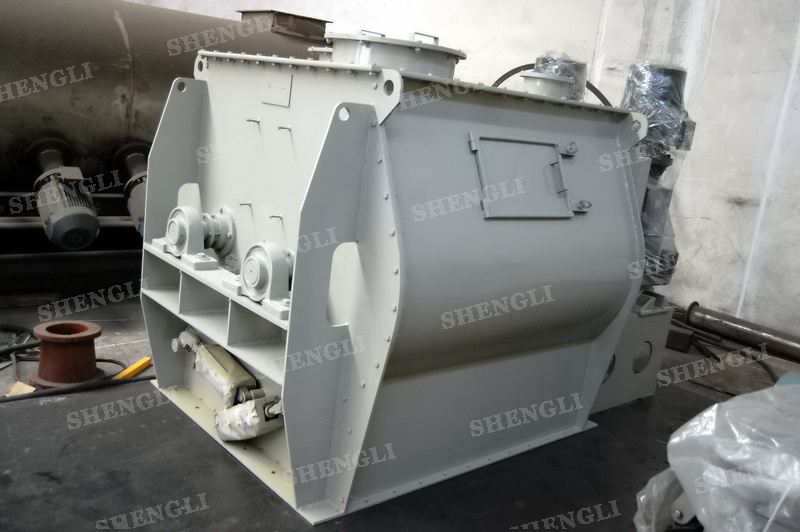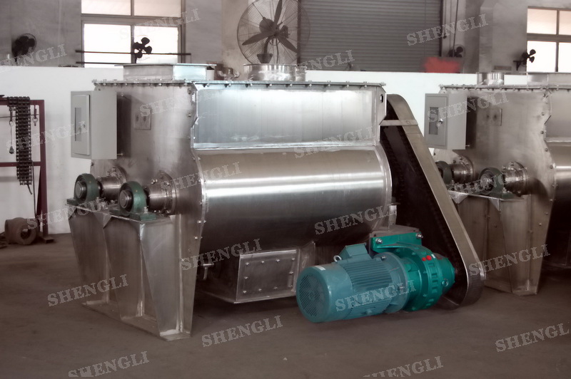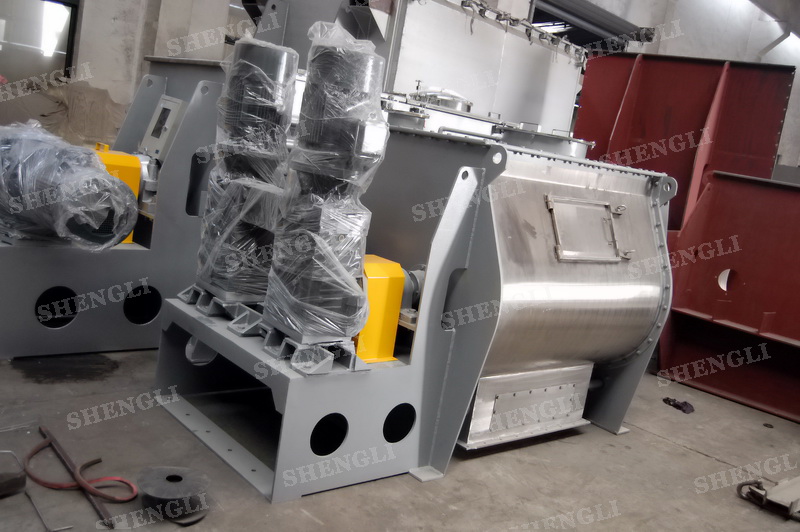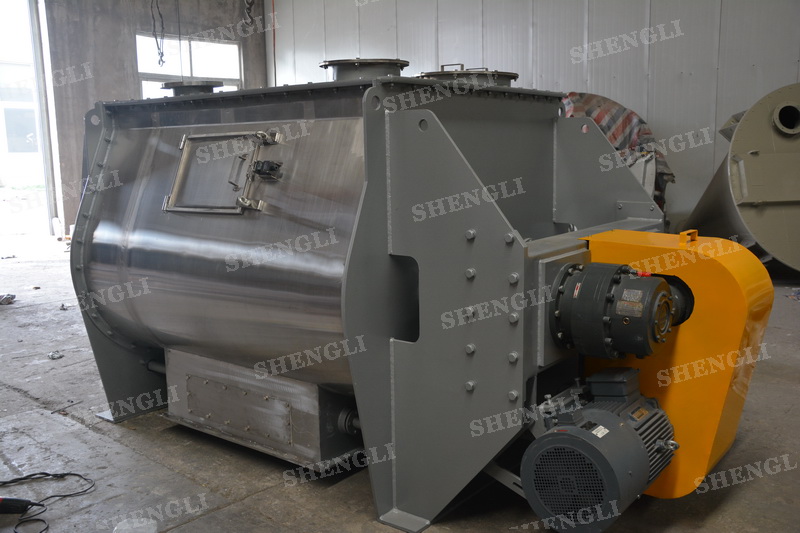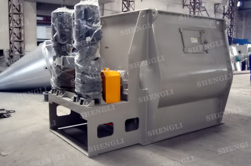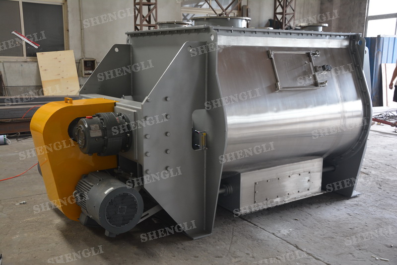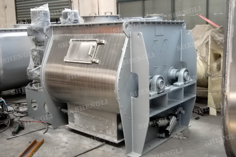 工作原理:無重力混合機采用雙U型筒體,內裝平行的雙主軸,主軸設有對稱的多組槳葉,其雙軸的運行軌跡部分重合形成嚙合空間,雙軸在受雙電機同步驅動,同步的對稱向外翻攪物料,致使物料能夠達到瞬間失重點,該設備具備高效物料無差別的混合能力。