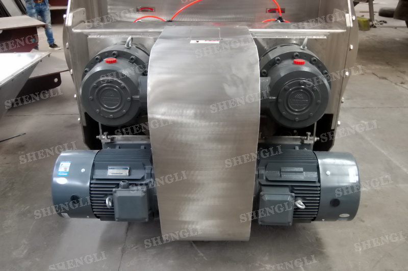 工作原理:無重力混合機采用雙U型筒體,內裝平行的雙主軸,主軸設有對稱的多組槳葉,其雙軸的運行軌跡部分重合形成嚙合空間,雙軸在受雙電機同步驅動,同步的對稱向外翻攪物料,致使物料能夠達到瞬間失重點,該設備具備高效物料無差別的混合能力。